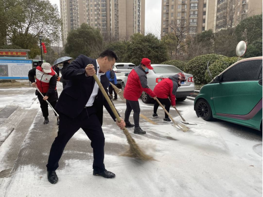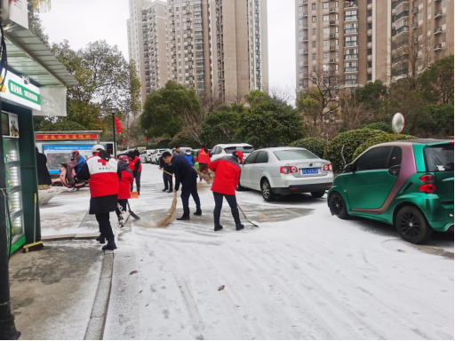 近日,我市下起大雪、冰雨,道路异常滑。2月21日,为了保证小区居民行走安全,云龙区骆驼山街道津东社区红十字会组织社区工作人员、辖区物业人员和居民志愿者,对小区主要道路、小区广场、小区大门前等地方进行清扫,赢得居民赞誉。