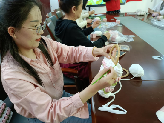 此项活动受到了妈妈们的热烈响应,看着自己亲手编织的作品,激动的说道“没想到我也可以钩出这么好看的包包,在咱们社区学到了新手艺,还收获了作品,太有成就感了!”