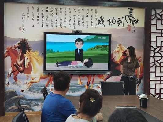 保健教师王彤彤老师首先通过一段生动有趣的视频向大家介绍了世界急救日的由来,然后又分别介绍了如何做好个人防护、健康防护的知识。孩子们积极互动,认真听讲。参加会议的还有村委会的会计、计生专干、生产队队长、村委会副书记,大家表示会将本次讲座知识传播给更多人。