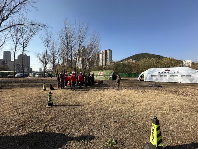 为深入贯彻习近平总书记总体国家安全观和 “人民至上、生命至上” 重要指示精神,12月3日,徐州市红十字会联合徐州医科大学党校、陆军第七十一集团军医院,在陆军第 71 集团军医院后训练场成功举办战地救护实战化演练。40 名参演人员沉浸式模拟野外冲突救援场景,以专业实操锤炼应急救护硬功,深化三方协作联动,为应急救护体系建设注入强劲动力。