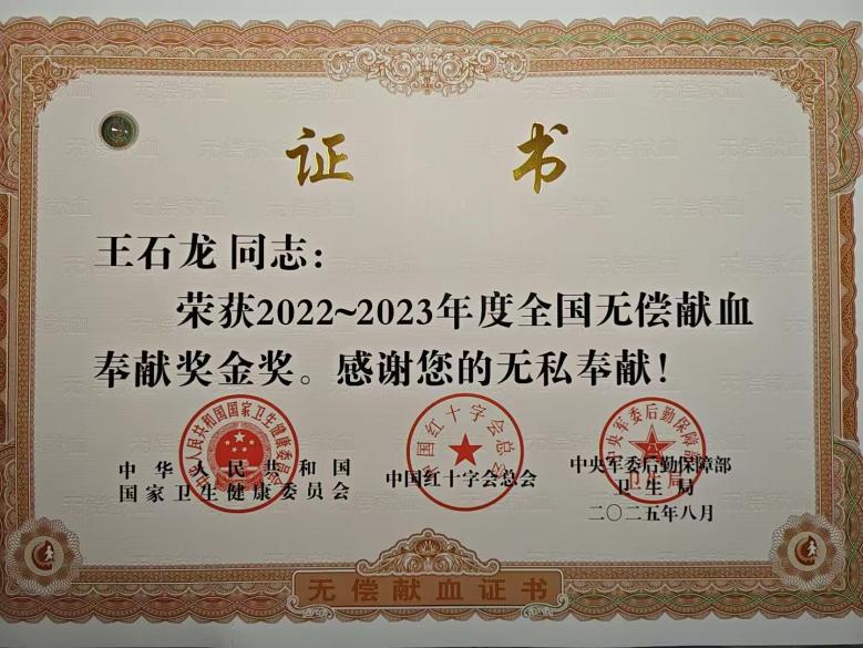 作为一线公交驾驶员,王石龙坚守初心、热忱服务,用心守护市民出行安全;作为红十字志愿者,王石龙带头加入造血干细胞捐献志愿者并登记成为遗体器官捐献志愿者,他坚持无偿献血二十余载,累计献血量达38800毫升,荣获全国无偿献血奉献奖金奖,以实际行动诠释人道、博爱、奉献的红十字精神。他还牵头组建志愿服务队,带领同事开展敬老助老、关爱留守儿童、无偿献血宣传、帮扶困难群体等公益活动,投身健康徐州建设,彰显了一名红十字志愿者和徐州公交人的责任担当与城市温度。