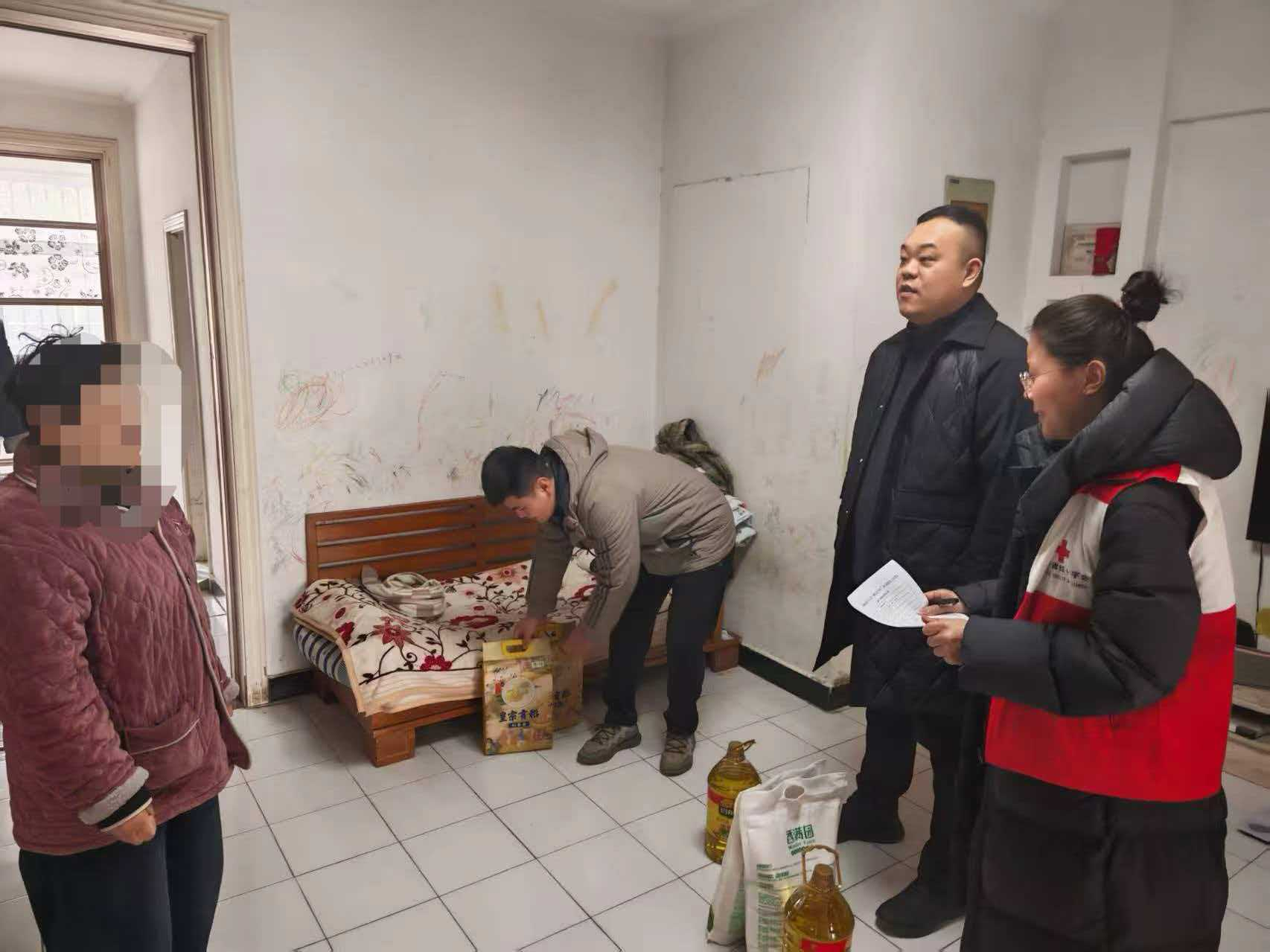 活动中,红十字会工作人员、会员、志愿者与受助群众亲切交谈,关心他们的身体状况、生活起居、医疗保障及年货准备情况,认真倾听心声诉求,鼓励其保持积极乐观生活态度,勇敢面对困难挑战。同时,送上慰问金及大米、面粉、食用油、棉被、红十字慰问包等物品。