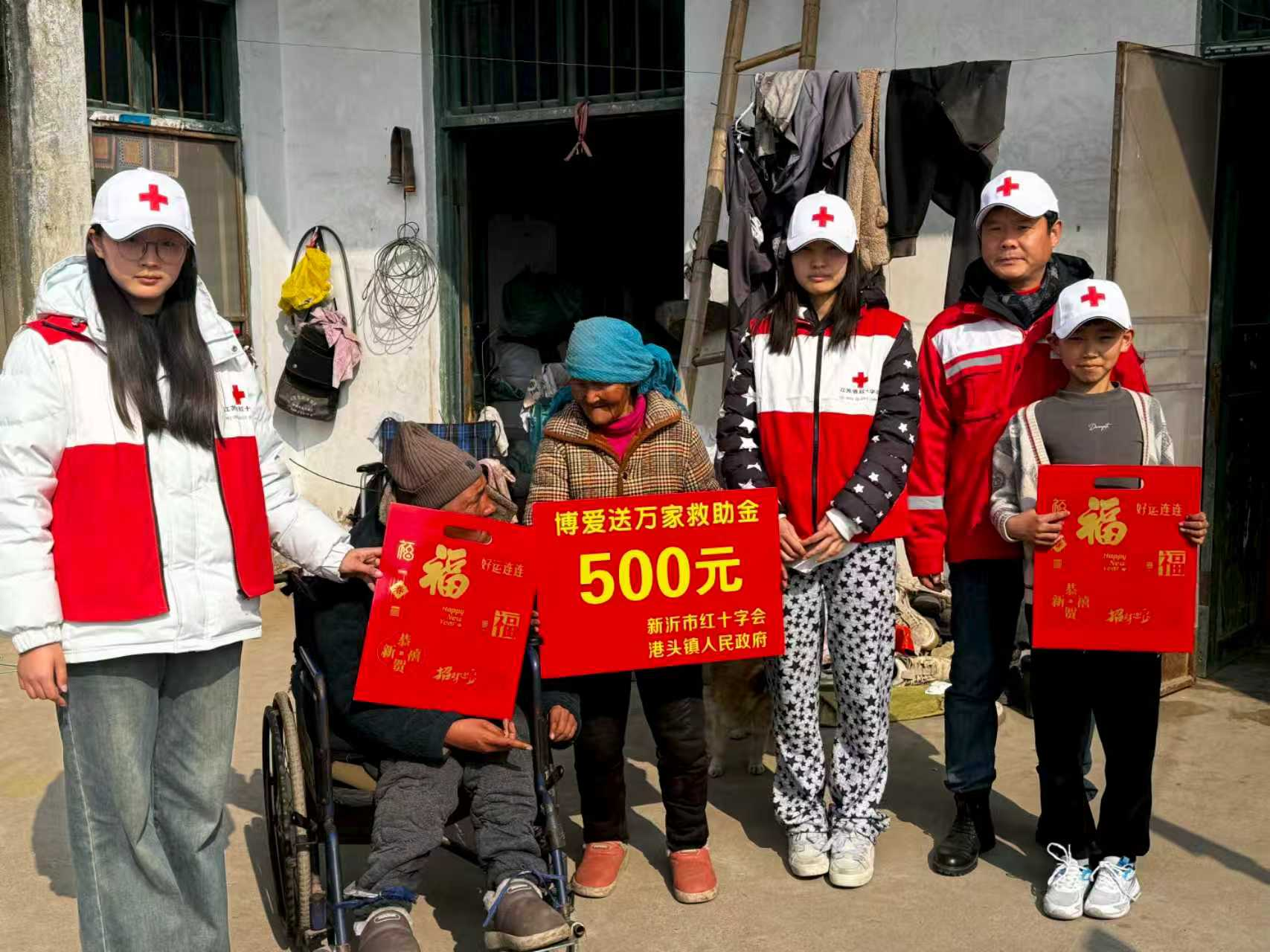 近日,徐州市红十字会组织系统内工作人员、会员、志愿者深入社区、乡村,全面启动2026年“红十字博爱送万家”活动,把“人道、博爱、奉献”的红十字精神寓于一手工作,为困难家庭、特殊群体送去党和政府的关怀、社会各界的爱心,保障困难群众温暖、幸福过年。
