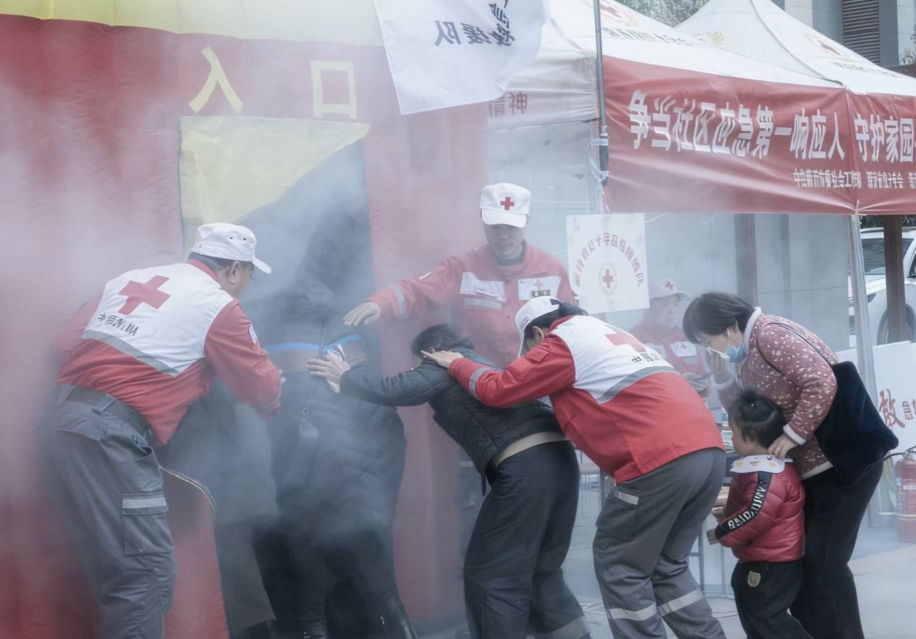 活动中,救援队队员围绕心肺复苏、AED使用、海姆立克急救法、创伤急救等核心技能开展手把手教学,通过理论讲解与实操演练相结合的方式,让居民快速掌握关键急救技巧。同时,针对小区常见的火灾、燃气泄漏、突发疾病等场景进行模拟处置,讲解报警规范、疏散引导、隐患排查等实用知识,并普及红十字“三救三献”相关内容。